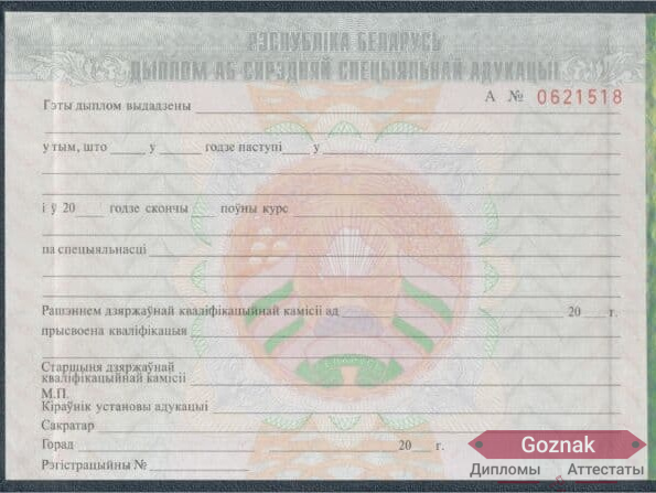 Компания «Гознак-Дипломы» успешно работает на рынке более 15 лет и предлагает Вам купить диплом техникума Белоруссии 2011- 2012 гг. выгодно по хорошим ценам на настоящем бланке Гознак с оригинальными печатями и подлинными подписями. Документы имеют все степени защиты, оформлены по государственным нормам и с учетом особенностей конкретных учебных заведений. Диплом техникума Белоруссии 2011- 2012 гг. на 100% соответствуют подлинникам, поэтому проблем точно не доставят, которые без опаски можно предоставлять в отдел кадров: