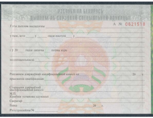 Диплом техникума Белоруссии 2011- 2012 гг. заполняется профессиональными специалистами по установленным правилам и нормам министерства образования РФ. Документ на 100% соответствует всем требованиями Министерства Образования и Науки РФ.