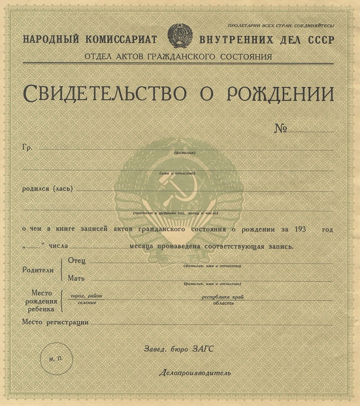 - При желании вы можете заказать свидетельство о рождении времен СССР;