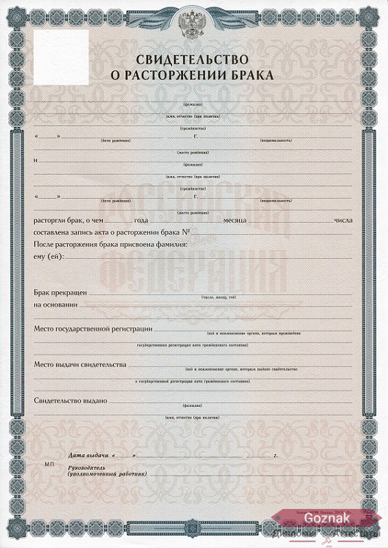 Компания «Гознак-Дипломы» успешно работает на рынке более 15 лет и предлагает Вам купить свидетельство о расторжении брака 2019 - 2025 гг. выгодно по хорошим ценам на настоящем бланке Гознак с оригинальными печатями и подлинными подписями. Документы имеют все степени защиты, оформлены по государственным нормам и с учетом особенностей конкретных учебных заведений. Свидетельство о расторжении брака 2019 - 2025 гг. на 100% соответствуют подлинникам, поэтому проблем точно не доставят, которые без опаски можно предоставлять в отдел кадров: